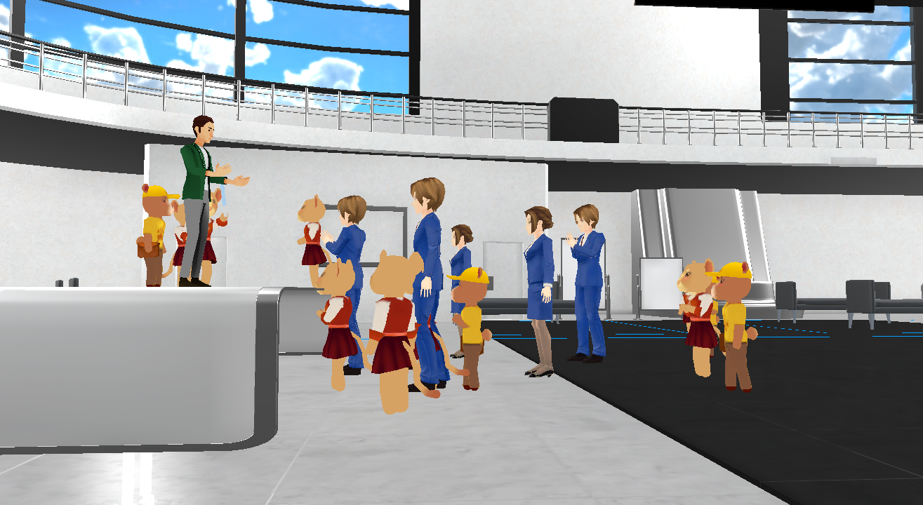 「メタバース役所」のアバター操作はPCの矢印キーで行えます。職員のみなさまはすぐに操作に慣れた様子で、メタバース役所空間内を自由に移動したり、感情を表現するエモート機能をうまく活用されていました。また、空間内でDNP社員が各種機能の説明を行った際も、エモート機能や音声出力(マイク)を通じて、積極的にコミュニケーションをとりながら楽しんでいる様子がみられました。