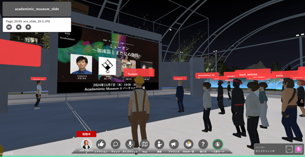 また、展示された作品を通じて普段考えないテーマについて議論が広がる場面もありました。たとえば、「素粒子ミューオン」に関する作品では、見えない現象をどう可視化するかというテーマについて参加者同士で自然に会話が生まれていました。このように、リアルとバーチャルの両方を活用することで、体験の深みが増し、来場者の興味を引き出せたと感じています。